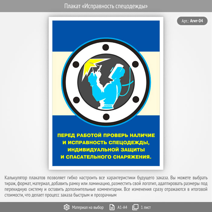 Плакат «Исправность спецодежды» (Агит-04, 1 лист) в Тюмени купить