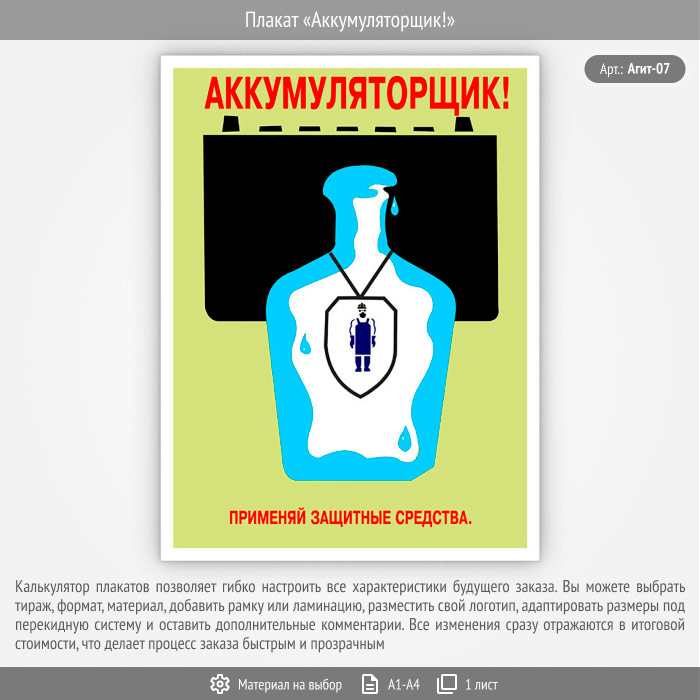 Плакат «Аккумуляторщик!» (Агит-07, 1 лист) в Тюмени купить