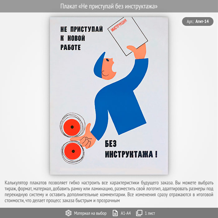 Плакат «Не приступай без инструктажа» (Агит-14, 1 лист) в Тюмени купить