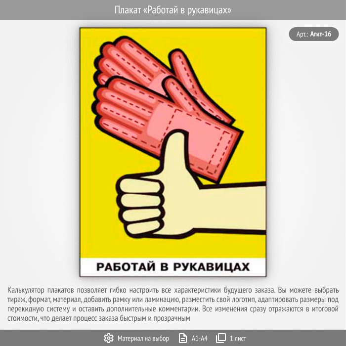 Плакат «Работай в рукавицах» (Агит-16, 1 лист) в Тюмени купить