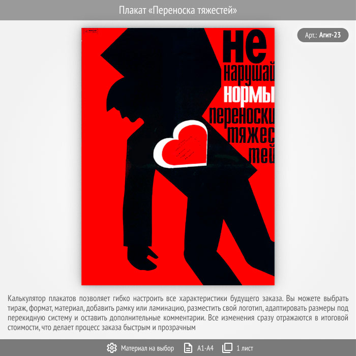 Плакат «Переноска тяжестей» (Агит-23, 1 лист) в Тюмени купить