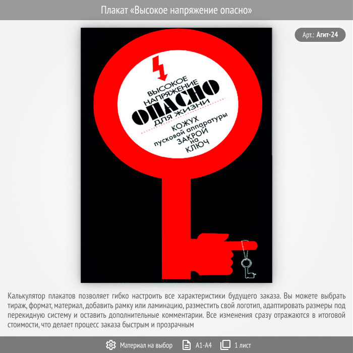 Плакат «Высокое напряжение опасно» (Агит-24, 1 лист) в Тюмени купить
