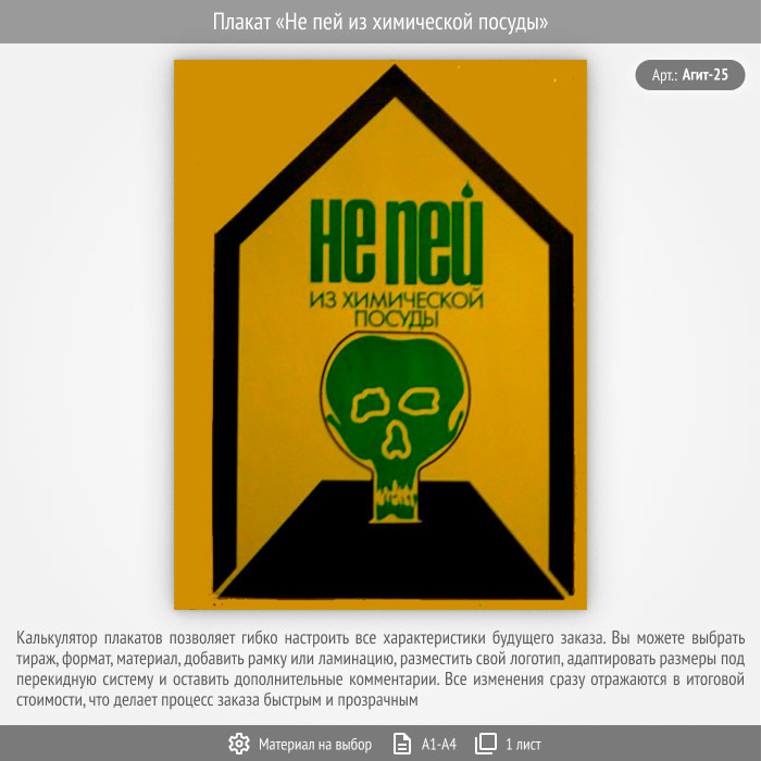 Плакат «Не пей из химической посуды» (Агит-25, 1 лист) в Тюмени купить