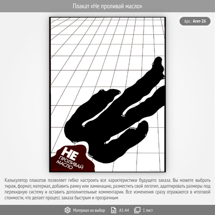 Плакат «Не проливай масло» (Агит-26, 1 лист) в Тюмени купить