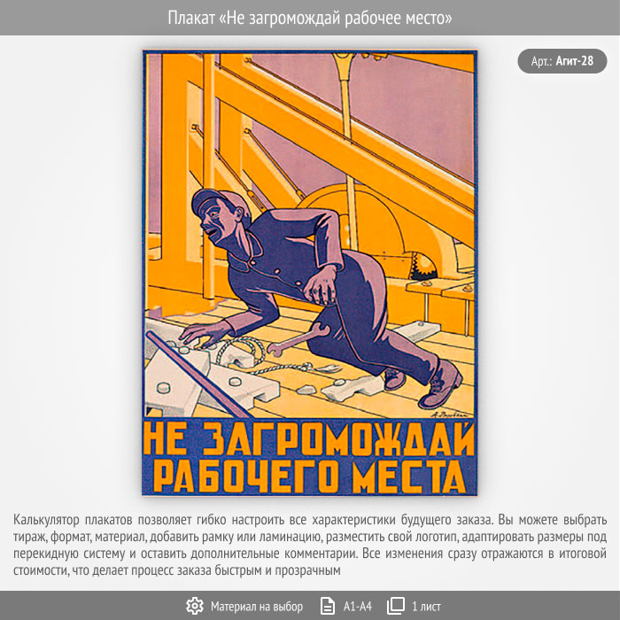 Плакат «Не загромождай рабочее место» (Агит-28, 1 лист) в Тюмени купить