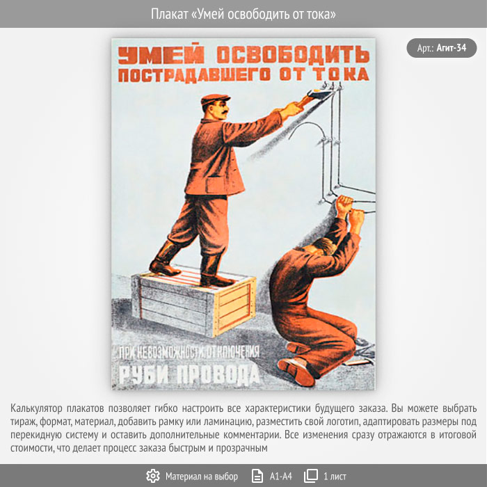 Плакат «Умей освободить от тока» (Агит-34, 1 лист) в Тюмени купить