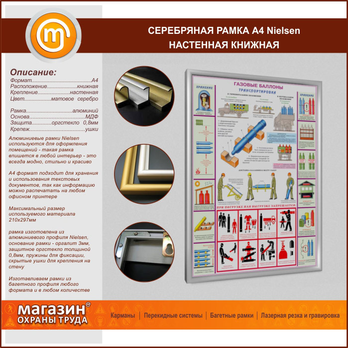 Багетная настенная рамка «Nielsen» А4 формата, книжная, матовое серебро в Тюмени купить