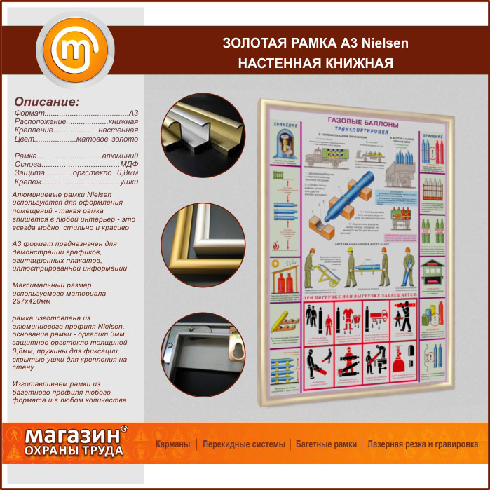 Багетная настенная рамка «Nielsen» А3 формата, книжная, матовое золото в Тюмени купить
