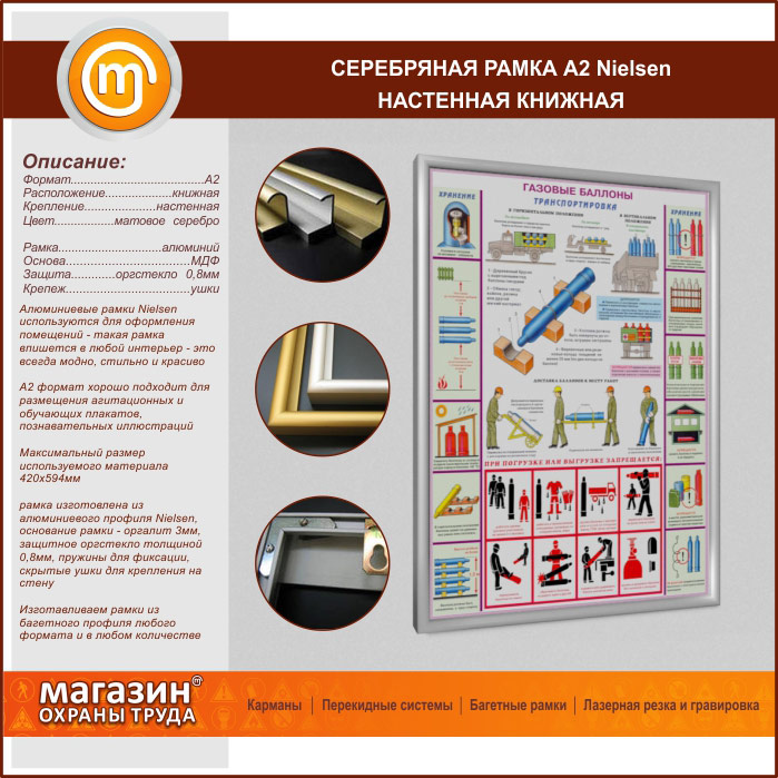 Багетная настенная рамка «Nielsen» А2 формата, книжная, матовое серебро в Тюмени купить