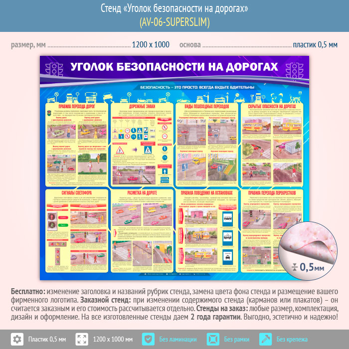 Стенд «Уголок безопасности на дорогах» (AV-06-SUPERSLIM) в Тюмени купить