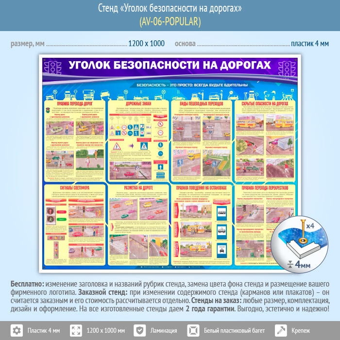Стенд «Уголок безопасности на дорогах» (AV-06-POPULAR) в Тюмени купить