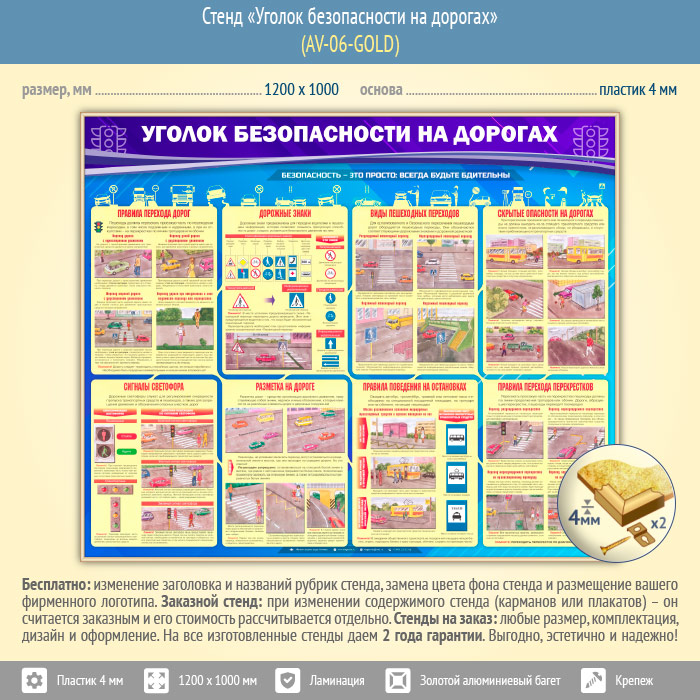 Стенд «Уголок безопасности на дорогах» (AV-06-GOLD) в Тюмени купить
