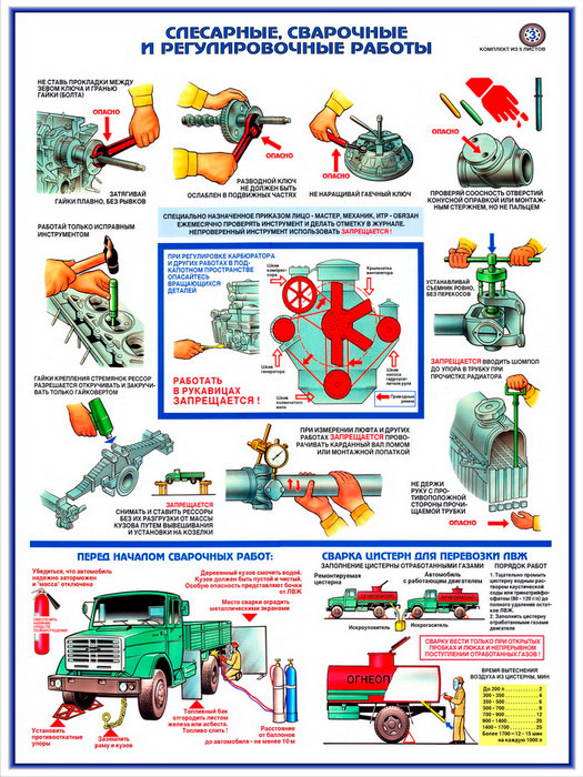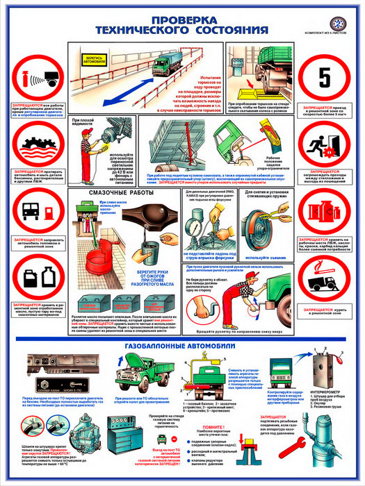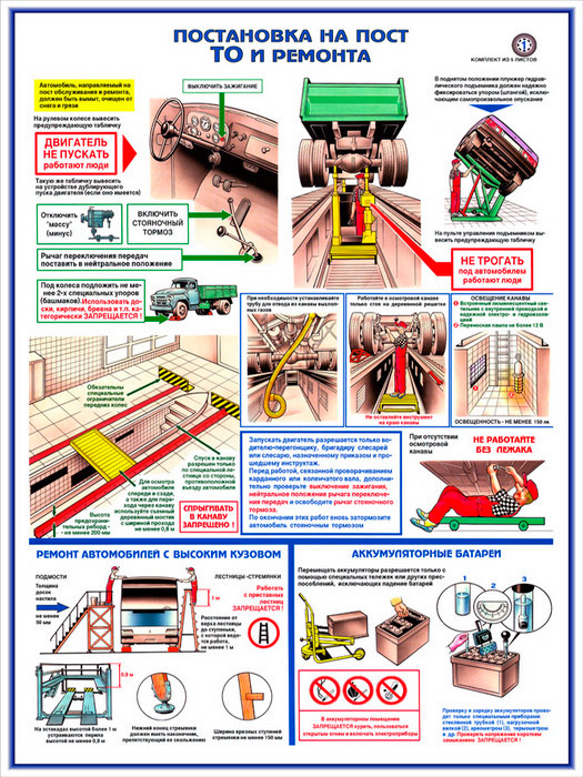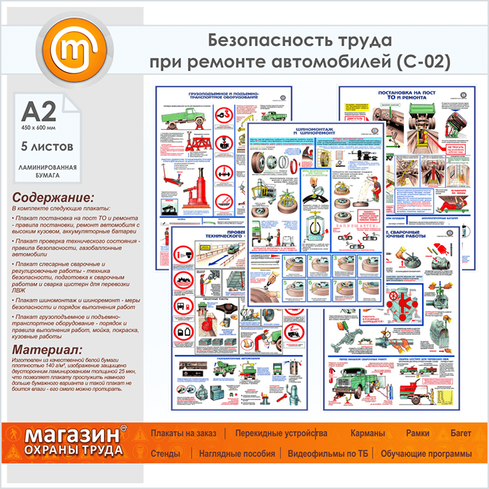 Плакат «Техника безопасности при ремонте автомобилей» (С-02, ламинированная бумага, А2, 5 листов) в Тюмени купить