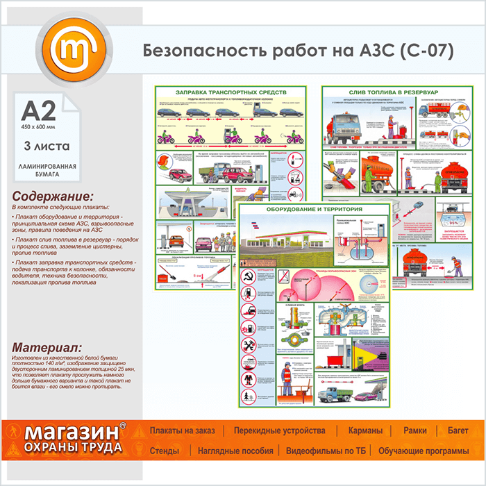 Плакаты «Безопасность работ на АЗС» (С-07, ламинированная бумага, А2, 3 листа) в Тюмени купить