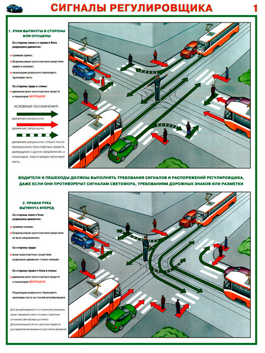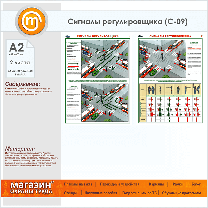 Плакаты «Сигналы регулировщика» (С-09, ламинированная бумага, А2, 2 листа) в Тюмени купить