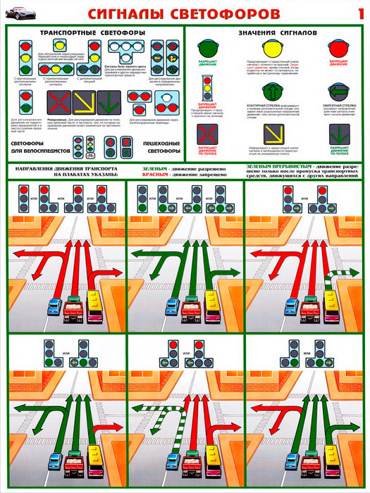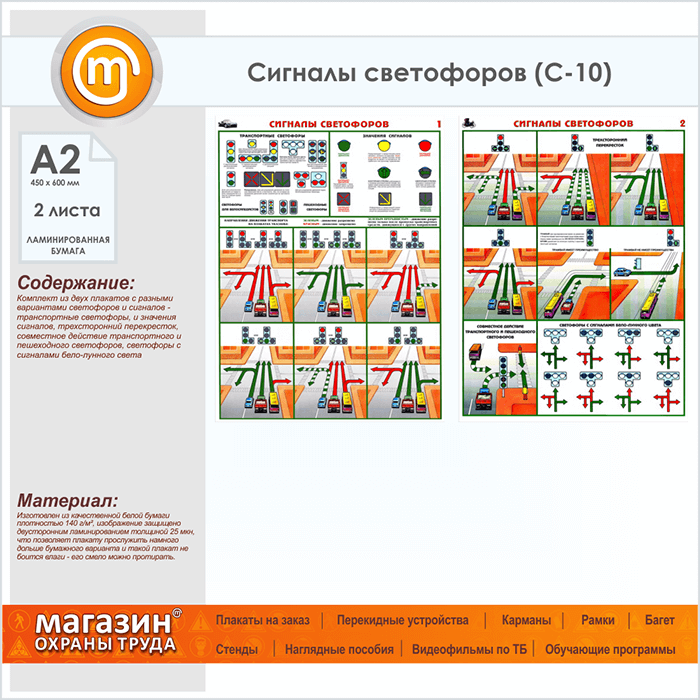 Плакаты «Сигналы светофоров» (С-10, ламинированная бумага, А2, 2 листа) в Тюмени купить