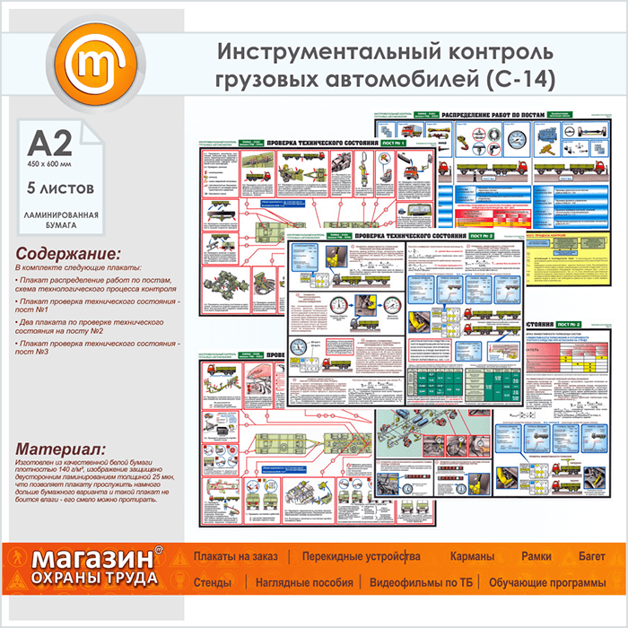 Плакаты «Инструментальный контроль грузовых автомобилей» (С-14, ламинированная бумага, А2, 5 листов) в Тюмени купить