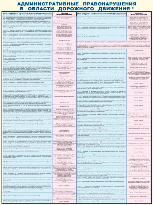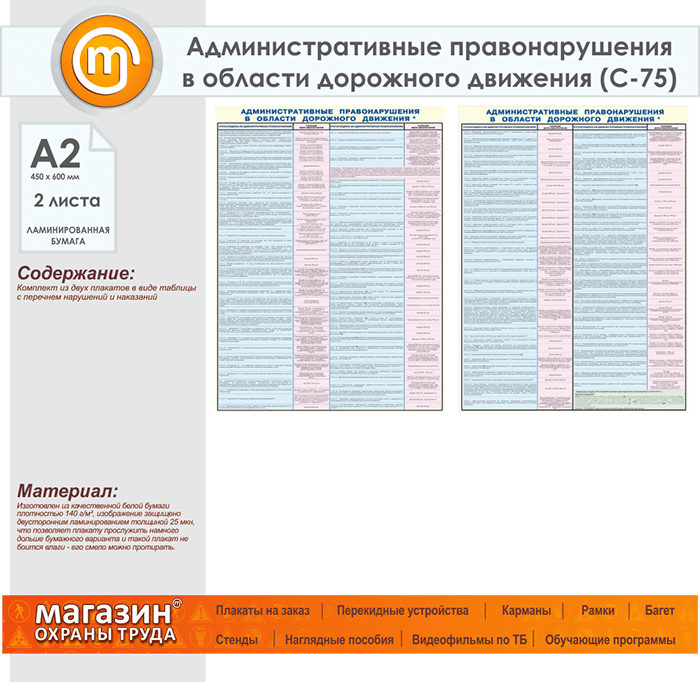 Плакаты «Административные правонарушения в области дорожного движения» (С-75, ламинированная бумага, А2, 2 листа) в Тюмени купить
