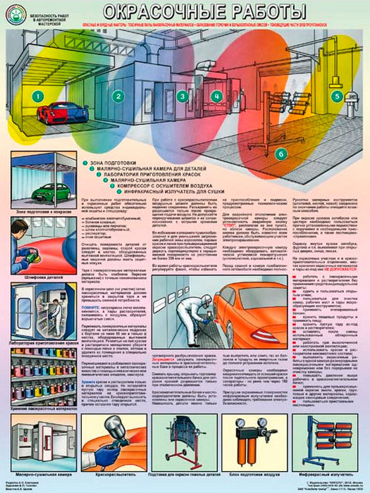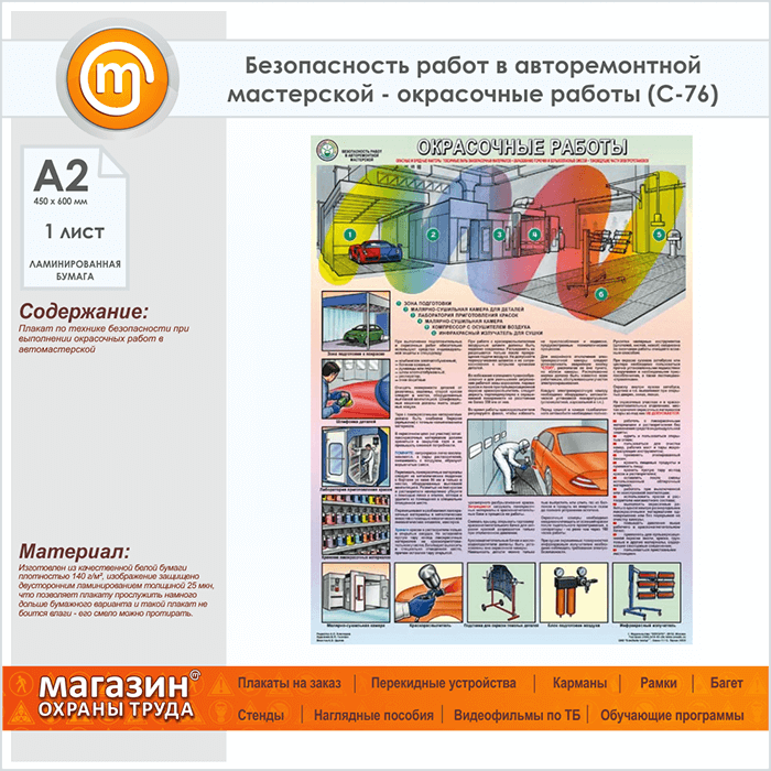 Плакат «Безопасность работ в авторемонтной мастерской - окрасочные работы» (С-76, ламинированная бумага, А2, 1 лист) в Тюмени купить