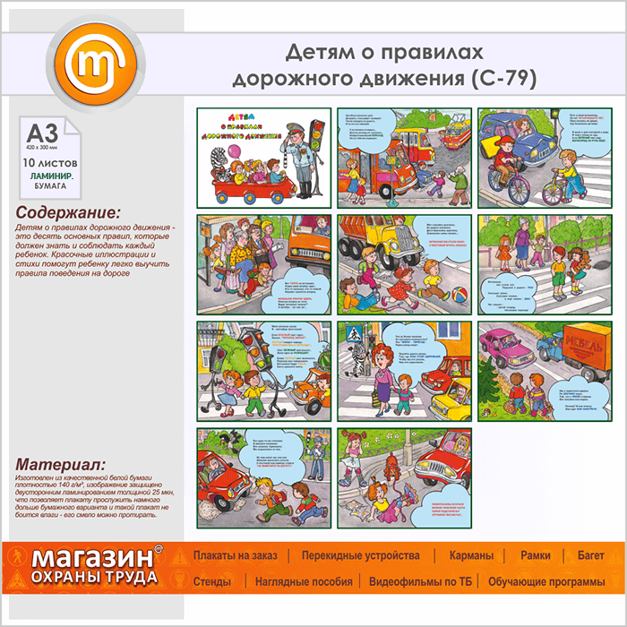 Плакаты «Детям о правилах дорожного движения» (С-79, ламинированная бумага, А3, 10 листов) в Тюмени купить