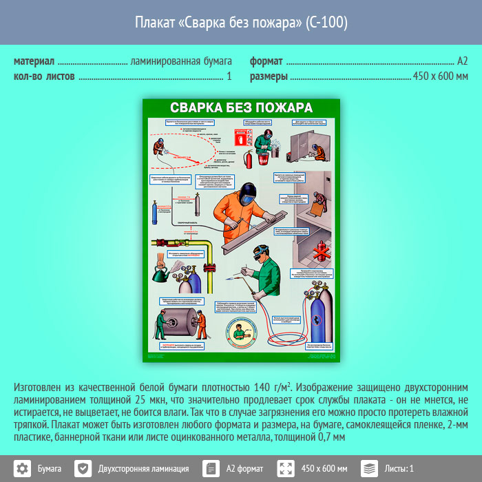 Плакат «Сварка без пожара» (С-100, ламинированная бумага, А2, 1 лист) в Тюмени купить