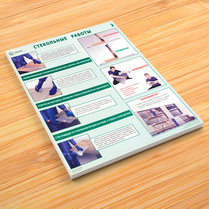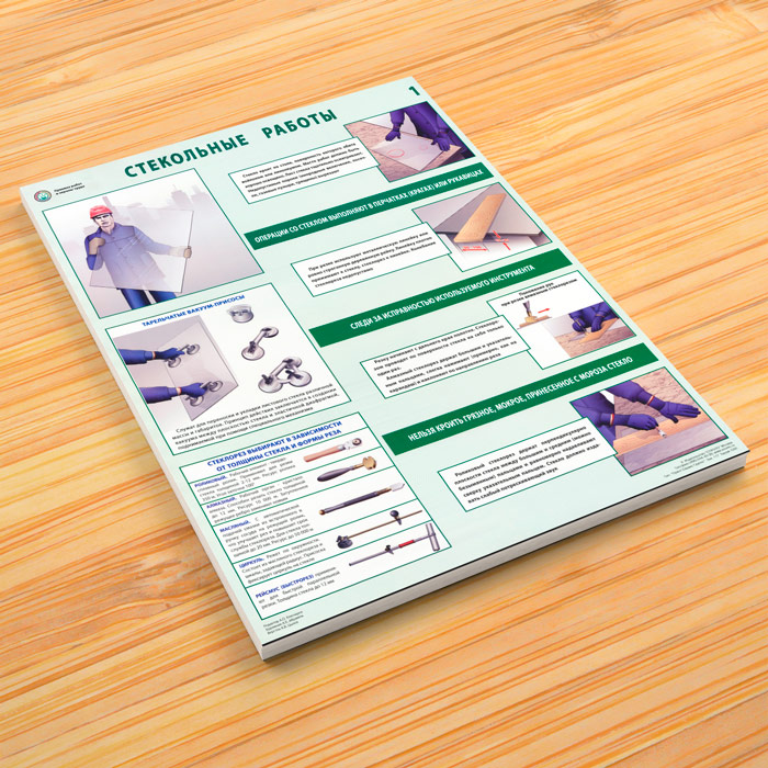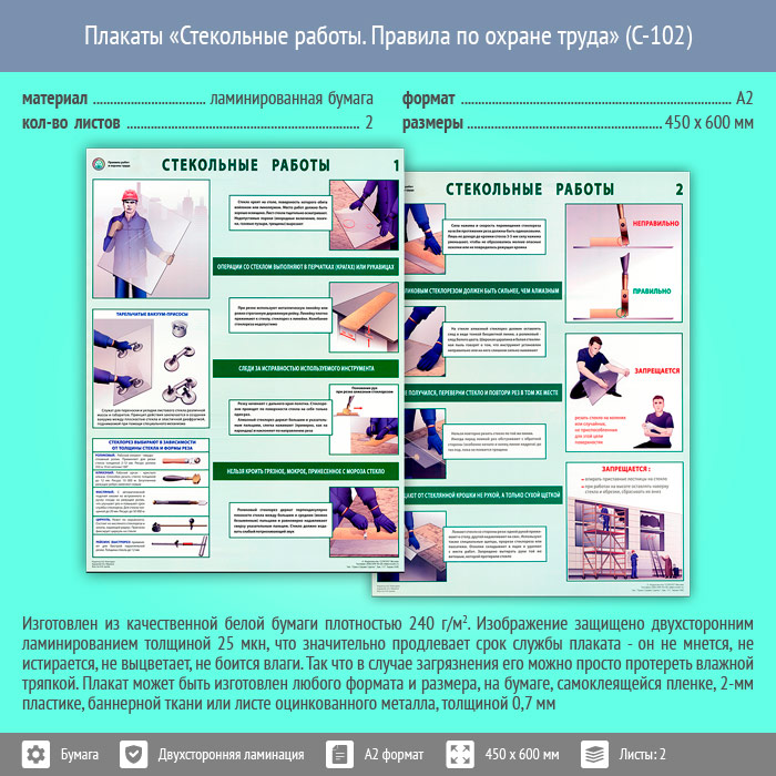 Плакаты «Стекольные работы. Правила по охране труда» (С-102, ламинированная бумага, А2, 2 листа) в Тюмени купить
