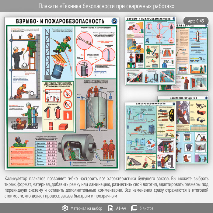 Плакаты «Техника безопасности при сварочных работах» (С-43, 5 листов) в Тюмени купить