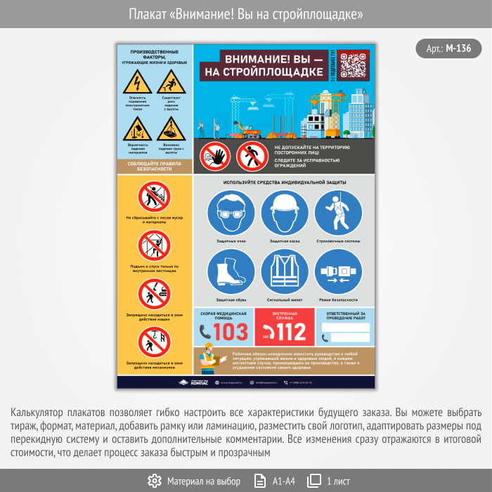 Плакат «Внимание! Вы на стройплощадке» с QR (М-136, 1 лист) в Тюмени купить