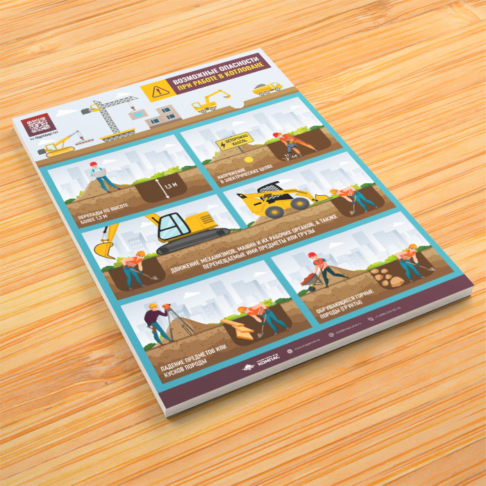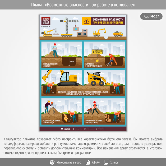 Плакат «Возможные опасности при работе в котловане» с QR (М-137, 1 лист) в Тюмени купить