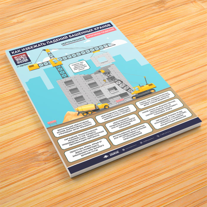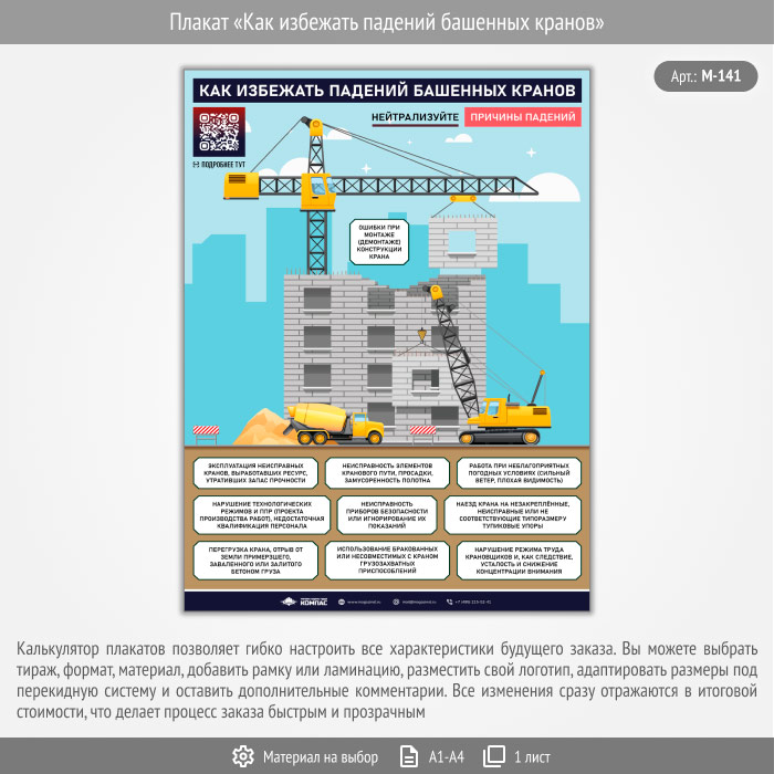 Плакат «Как избежать падений башенных кранов» с QR (М-141, 1 лист) в Тюмени купить