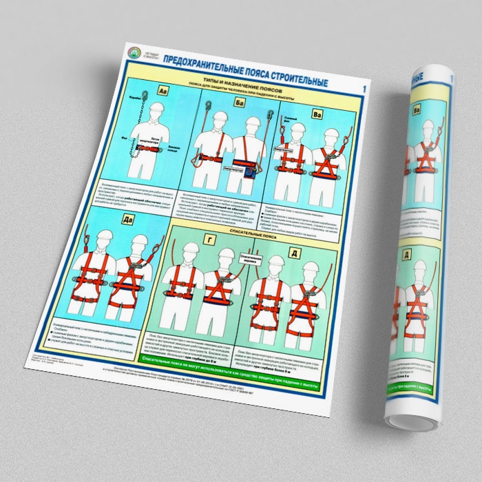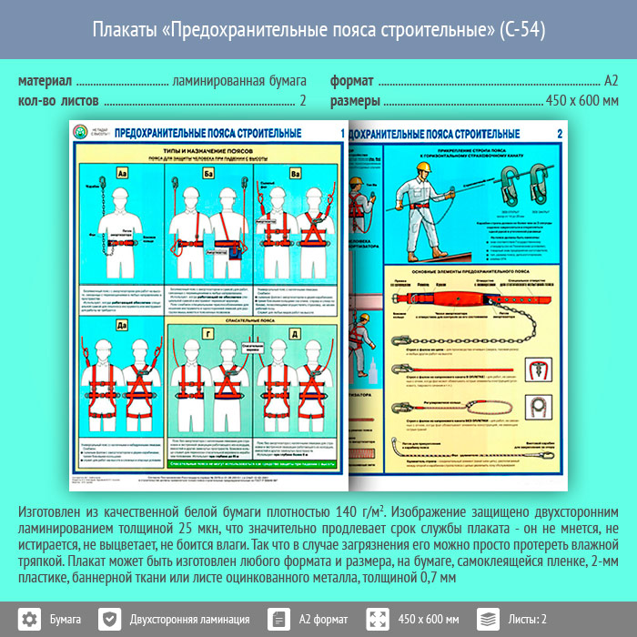 Плакаты «Предохранительные пояса строительные» (С-54, ламинированная бумага, А2, 2 листа) в Тюмени купить