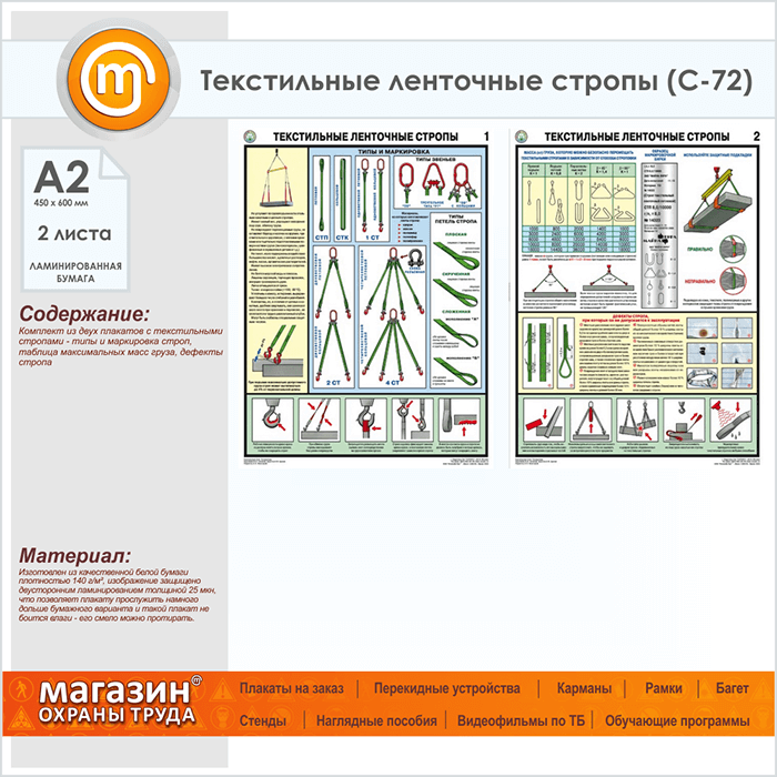Плакаты «Текстильные ленточные стропы» (С-72, ламинированная бумага, А2, 2 листа) в Тюмени купить