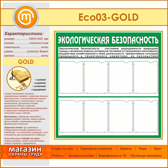 Стенд «Экологическая безопасность» с 8 карманами (ECO-03-GOLD) в Тюмени купить