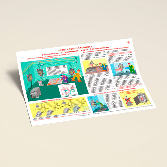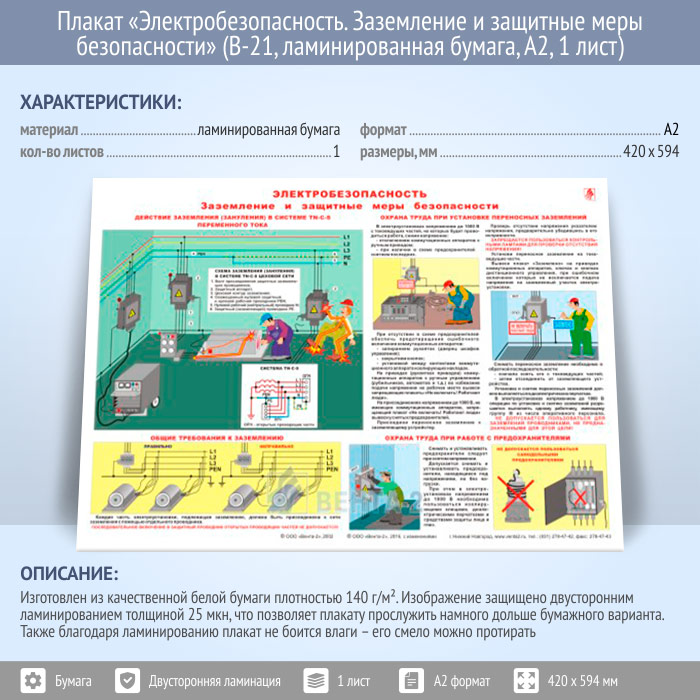 Плакат «Электробезопасность. Заземление и защитные меры безопасности» (В-21, ламинированная бумага, А2, 1 лист) в Тюмени купить