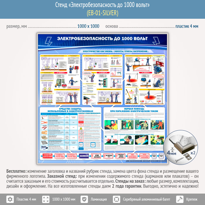Стенд «Электробезопасность до 1000 вольт» (EB-01-SILVER) в Тюмени купить