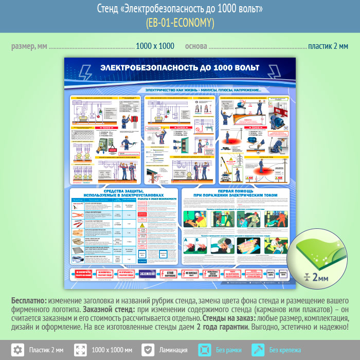 Стенд «Электробезопасность до 1000 вольт» (EB-01-ECONOMY) в Тюмени купить