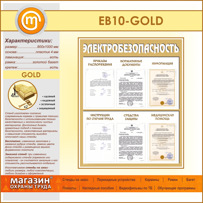 Стенд «Электробезопасность» с 6 карманами (EB-10-GOLD) в Тюмени купить