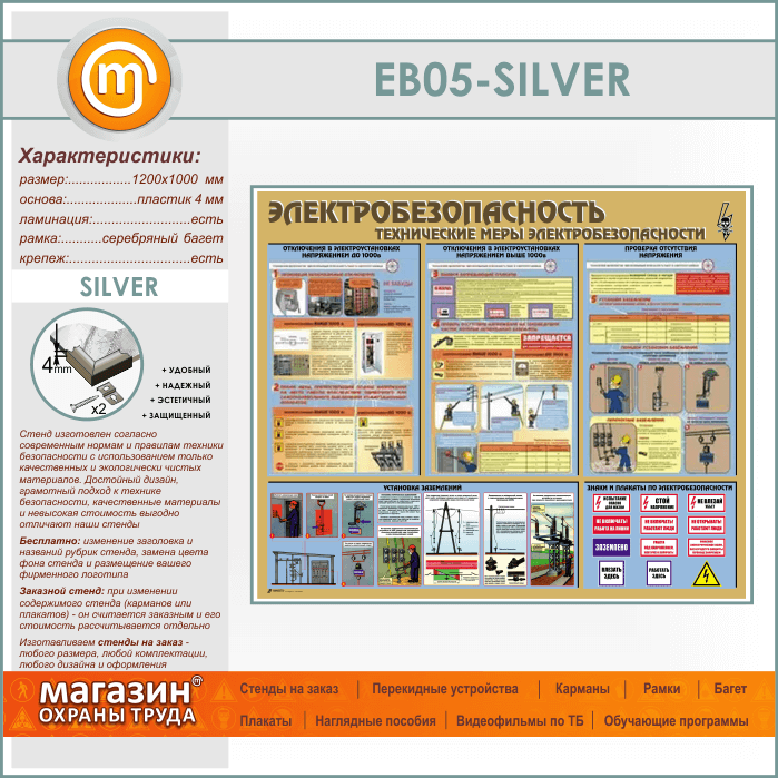 Стенд «Электробезопасность. Технические меры электробезопасности» (EB-05-SILVER) в Тюмени купить