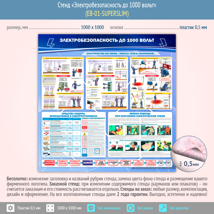 Стенд «Электробезопасность до 1000 вольт» (EB-01-SUPERSLIM) в Тюмени купить