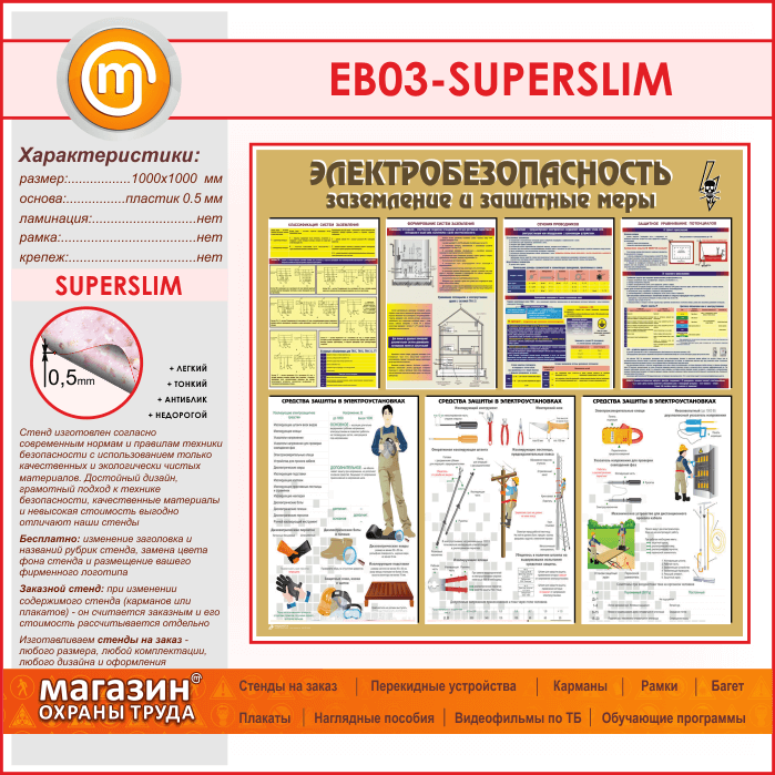 Стенд «Электробезопасность. Заземление и защитные меры» (EB-03-SUPERSLIM) в Тюмени купить
