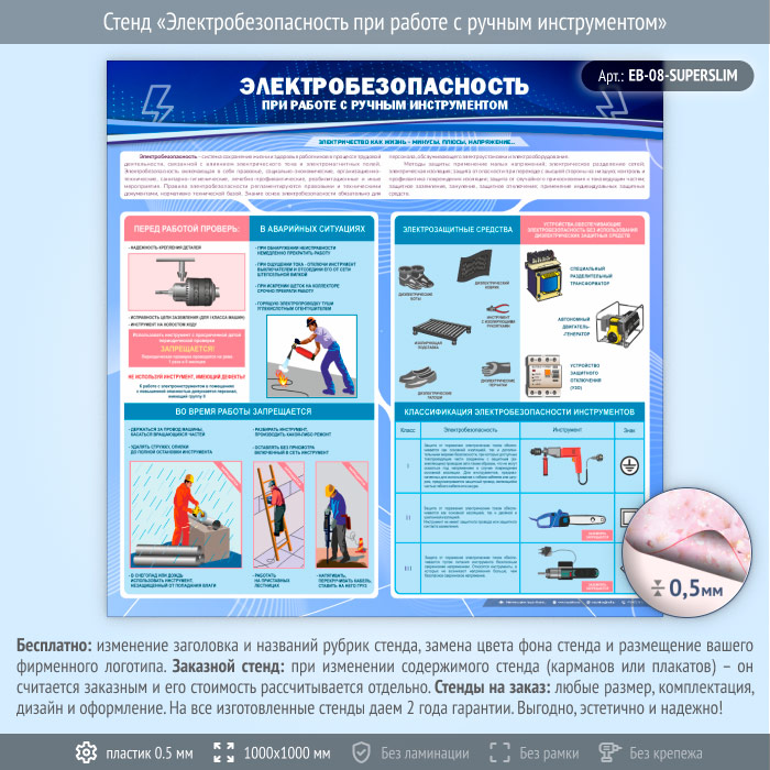 Стенд «Электробезопасность при работе с ручным инструментом» (EB-08-SUPERSLIM) в Тюмени купить