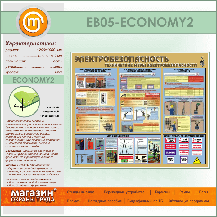 Стенд «Электробезопасность. Технические меры электробезопасности» (EB-05-ECONOMY2) в Тюмени купить