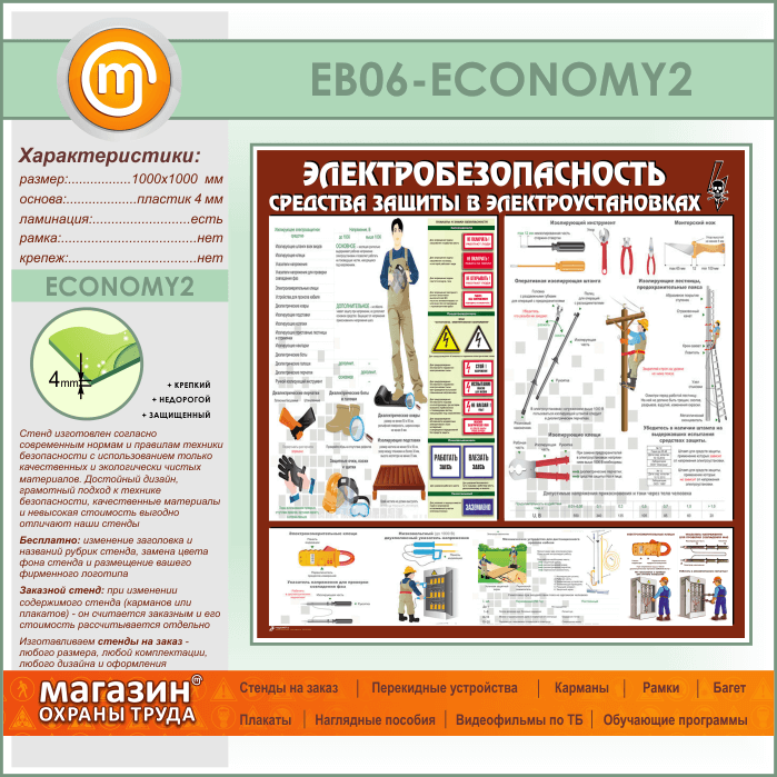 Стенд «Электробезопасность. Средства защиты в электроустановках» (EB-06-ECONOMY2) в Тюмени купить