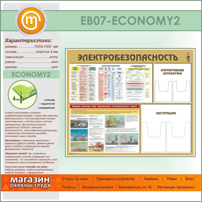 Стенд «Электробезопасность» с 4 объемными карманами (EB-07-ECONOMY2) в Тюмени купить