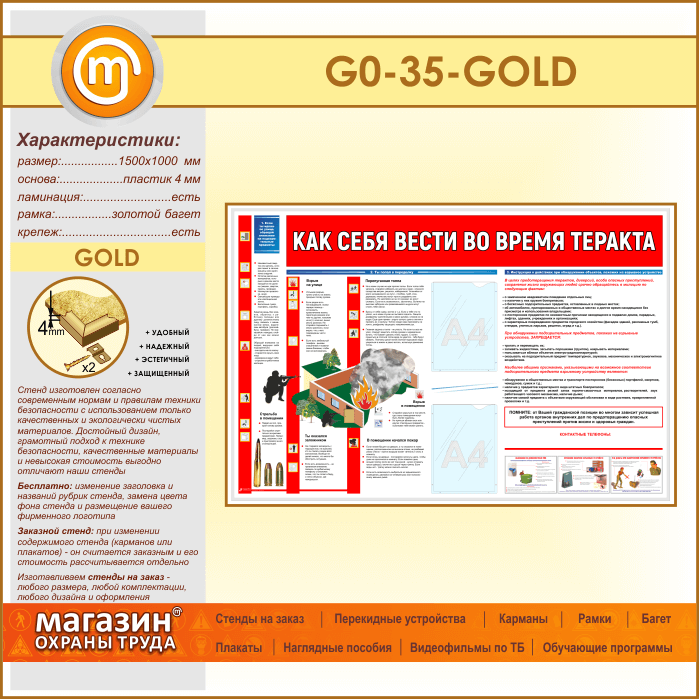 Стенд «Как себя вести во время теракта» c 2 карманами (GO-35-GOLD) в Тюмени купить