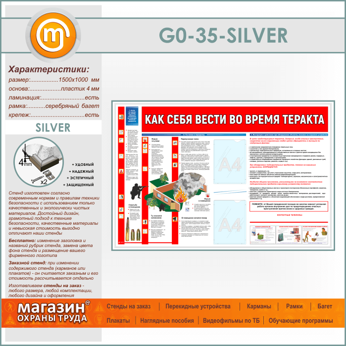 Стенд «Как себя вести во время теракта» c 2 карманами (GO-35-SILVER) в Тюмени купить