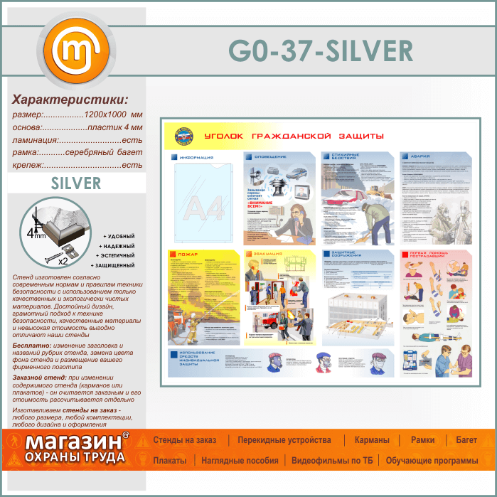 Стенд «Уголок гражданской защиты» с карманом (GO-37-SILVER) в Тюмени купить