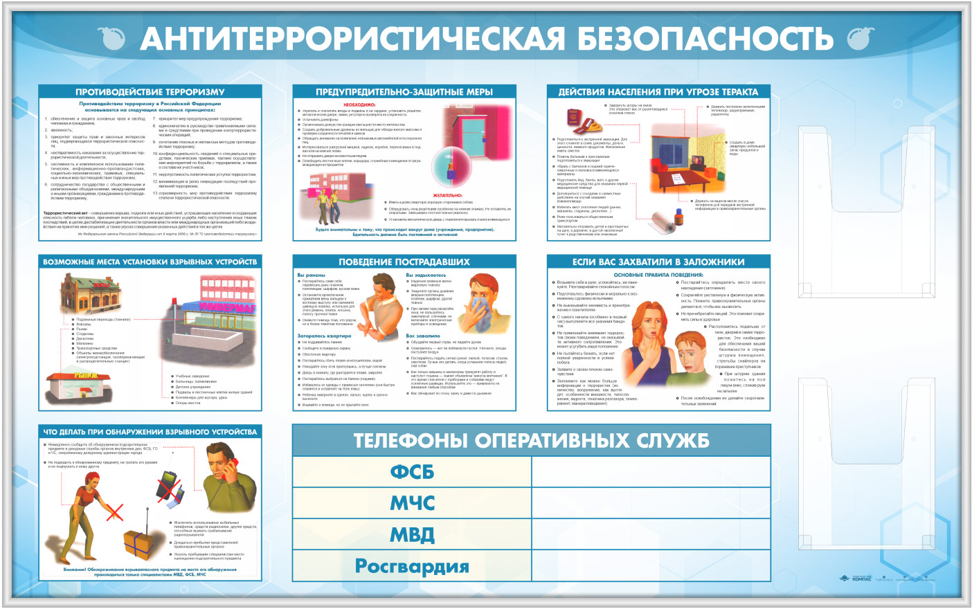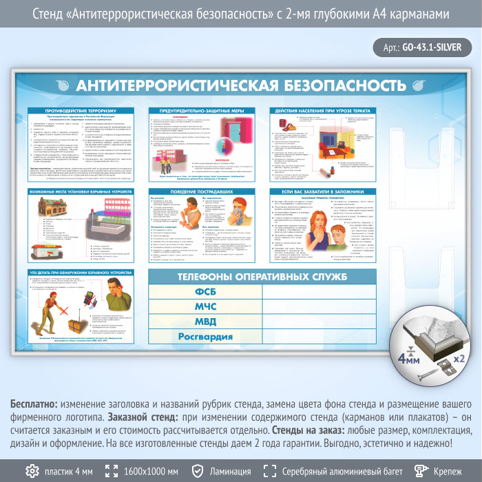 Стенд «Антитеррористическая безопасность» с 2-мя глубокими А4 карманами (GO-43.1-SILVER) в Тюмени купить