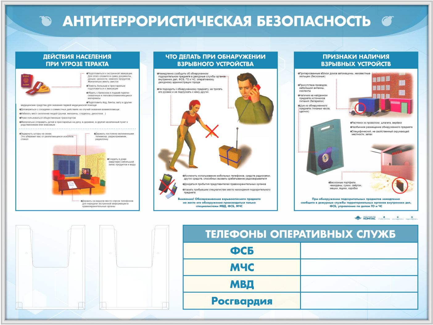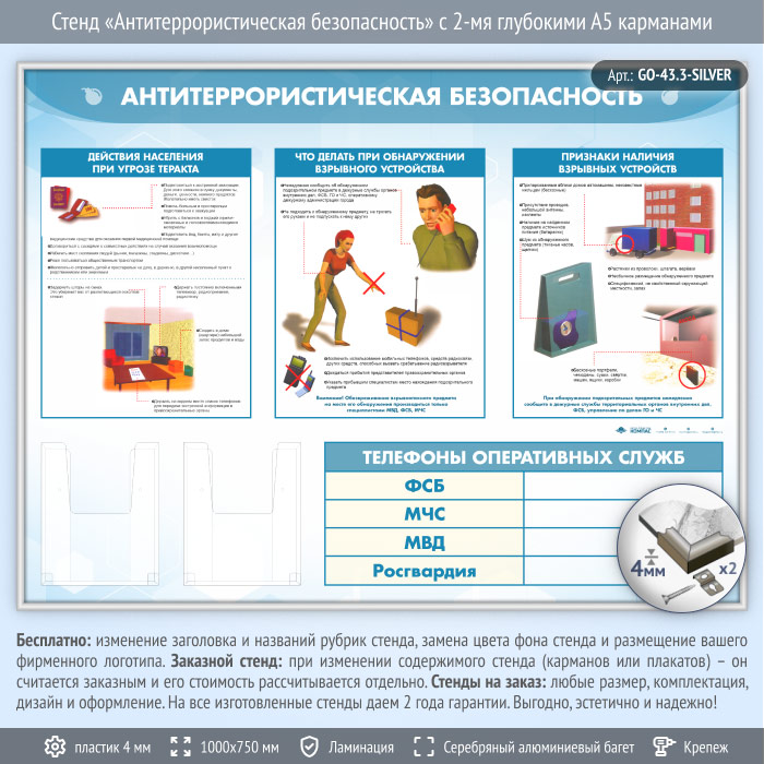 Стенд «Антитеррористическая безопасность» с 2-мя глубокими А5 карманами (GO-43.3-SILVER) в Тюмени купить