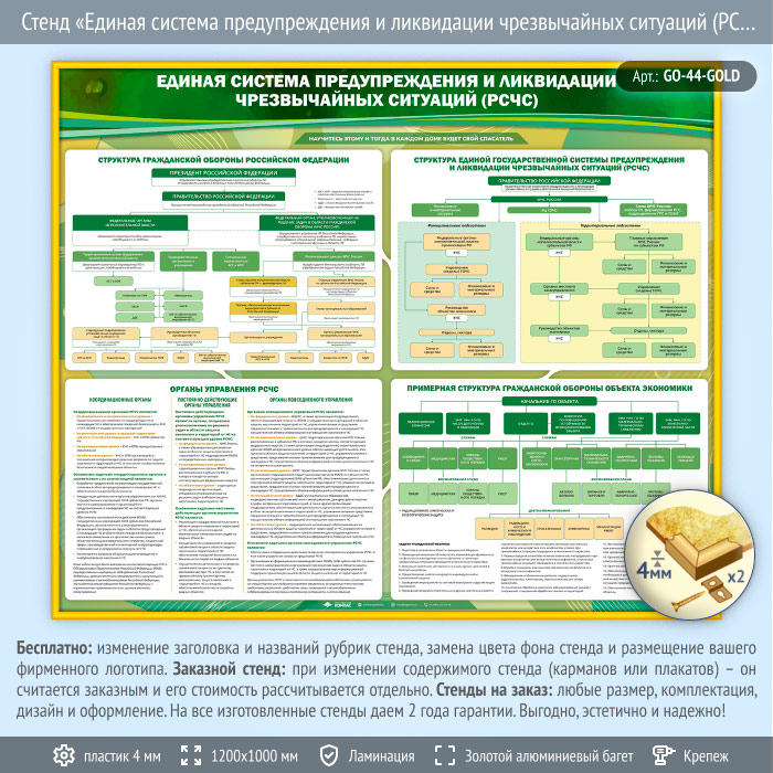 Стенд «Единая система предупреждения и ликвидации чрезвычайных ситуаций (РСЧС)» (GO-44-GOLD) в Тюмени купить